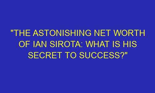 The Astonishing Net Worth of Ian Sirota: What Is His Secret to Success? Are you curious to know how Ian Sirota made his millions? Ian Sirota is an American entrepreneur and businessman who has made a fortune in various fields. His net worth is estimated to be around $500 million, and he is among the