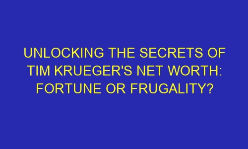Unlocking the Secrets of Tim Krueger’s Net Worth: Fortune or Frugality? Do you ever wonder how some people become wealthy while others struggle to make ends meet? Tim Krueger is one such person who has managed to accumulate a sizable net worth. However, the question is, what is the secret behind his success? Is it